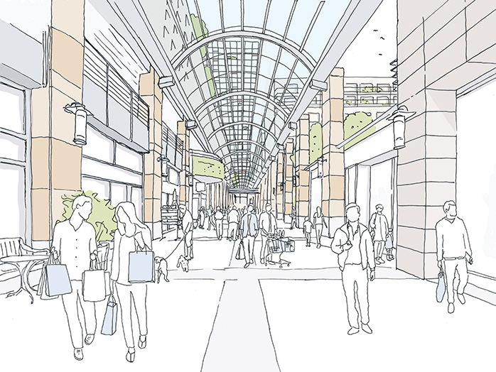 Die qualitätsvolle Weiterentwicklung der Metalli knüpft an die typische Metalli-Architektur mit ihrer Allee, den Fassaden, Glasdächern und Arkaden sowie den Plätzen und dem städtischen Einkaufserlebnis an und bewahrt ein wichtiges Stück Zuger Identität.